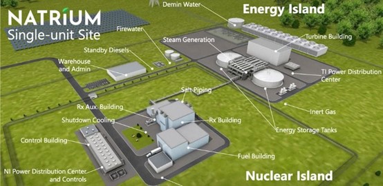 TerraPower的345MW的Natrium電廠,分為核島(Nuclear Island)和能島(Energy Island)兩系統區,請見圖一的設計圖,介紹幾個競爭優勢: