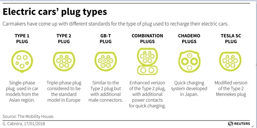 目前台灣比較常見的是J1772以及SC,主要是因現行國內九成掛牌的電動車以特斯拉為主,雖然目前透過轉接器連結J1772使用沒有太大問題,但未來車款種類攀升,政府作為基礎建設的提供者,明確訂出國內推行的充電連接器的種類有其必要,才能讓車商或是系統商做產品規劃時能有所依循。