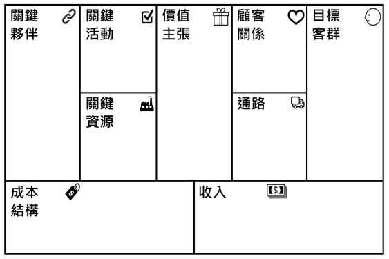 Business Model Canvas最早在2010年由瑞士企業理論研究學者Alexander Osterwalder提出,初始的目的是讓企業主用一個系統化且視覺化的工具,制定企業的發展策略;Business Model Canvas雖然提出時間不長,但影響相當深遠,目前已經廣為產業界及顧問機構使用。主要分為三大部份: